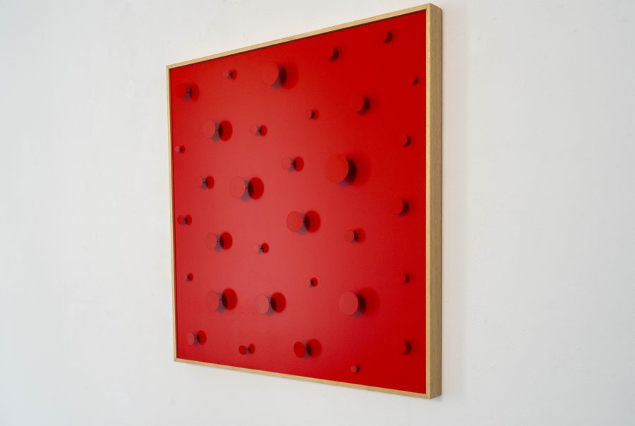 Partito dalla fotografia, Federico Casati ha progressivamente evoluto il suo linguaggio artistico integrando elementi materici in rilievo, come chiodi forgiati a mano e sottili lamine metalliche applicate su fondi monocromi. Questa tecnica mista gli permette di sperimentare con texture e tridimensionalità, aggiungendo profondità e complessità alle sue opere. Le sue serie si basano su variazioni tonali delicate e sul sapiente gioco di luce e ombra, che conferiscono agli interventi un senso di movimento e trasformazione costante. Attraverso questi effetti visivi, Casati crea sensazioni di smaterializzazione e instabilità percettiva, stimolando l’osservatore a un’esperienza sensoriale dinamica e coinvolgente, in cui la realtà visiva appare fluida, mutevole e in continua evoluzione, spingendo a una riflessione più profonda sul rapporto tra percezione e realtà.